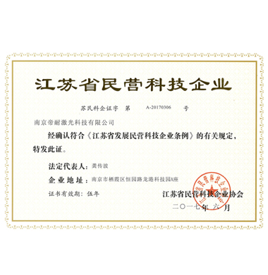 南京帝耐激光科技有限公司,是由中科院上海光學精密機械研究所博士聯合南京先進激光技術研究院,合資在南京經濟技術開發區建廠,共同研發高端激光設備,產品涵蓋紅外、綠光、紫外、深紫外等波段激光器及激光設備。
